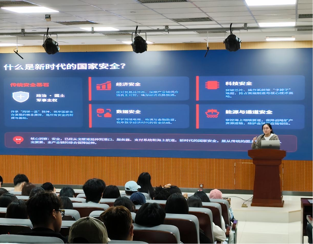 马克思主义学院张学敏老师以“惊天动地事,隐姓埋名人”为主题讲授团课,带领大家重温科研先辈们热爱祖国、无私奉献、自力更生、艰苦奋斗、大力协同、勇于登攀的峥嵘岁月,引导青年学子从先辈事迹中汲取精神力量。同时,结合新时代国家安全主题教育要求,深入阐释“两弹一星”精神的新时代内涵,通过师生互动、感受分享等形式勉励大家坚定理想信念,厚植家国情怀,将爱国精神转化为服务同学、奉献集体的实际行动,以过硬素养扛起青年责任。