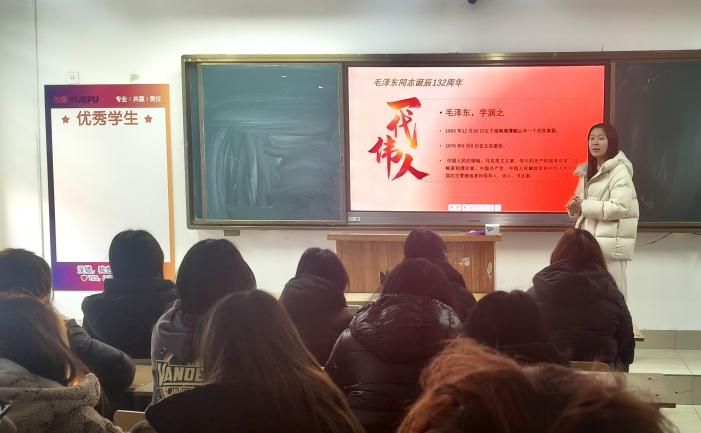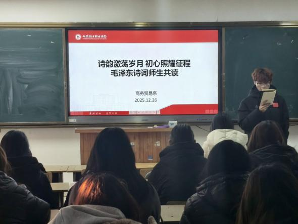 为纪念毛泽东同志诞辰132周年,12月26日,商务贸易系“一站式”学生社区举办“诗韵激荡岁月 初心照耀征程”毛泽东诗词师生共读活动。系辅导员与二十余名诗词分会成员共同诵读经典、交流感悟。