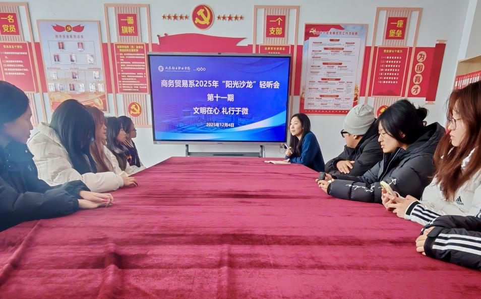12月4日,商务贸易系以“文明在心,礼行于微”为主题,举办了第十一期“阳光沙龙”轻听会。陶玉景老师详细讲解了创建文明班级、争当文明大学生、建设文明宿舍的具体要求和意义,鼓励同学们从自身做起、积极行动。同学们在认同活动的同时,也提出了丰富形式、灵活安排时间、建立长效反馈机制等建议,希望未来活动能更贴近实际需求。围绕“早起吃早餐”,大家坦诚反映了早课时间紧、早餐排队久等现实困难。