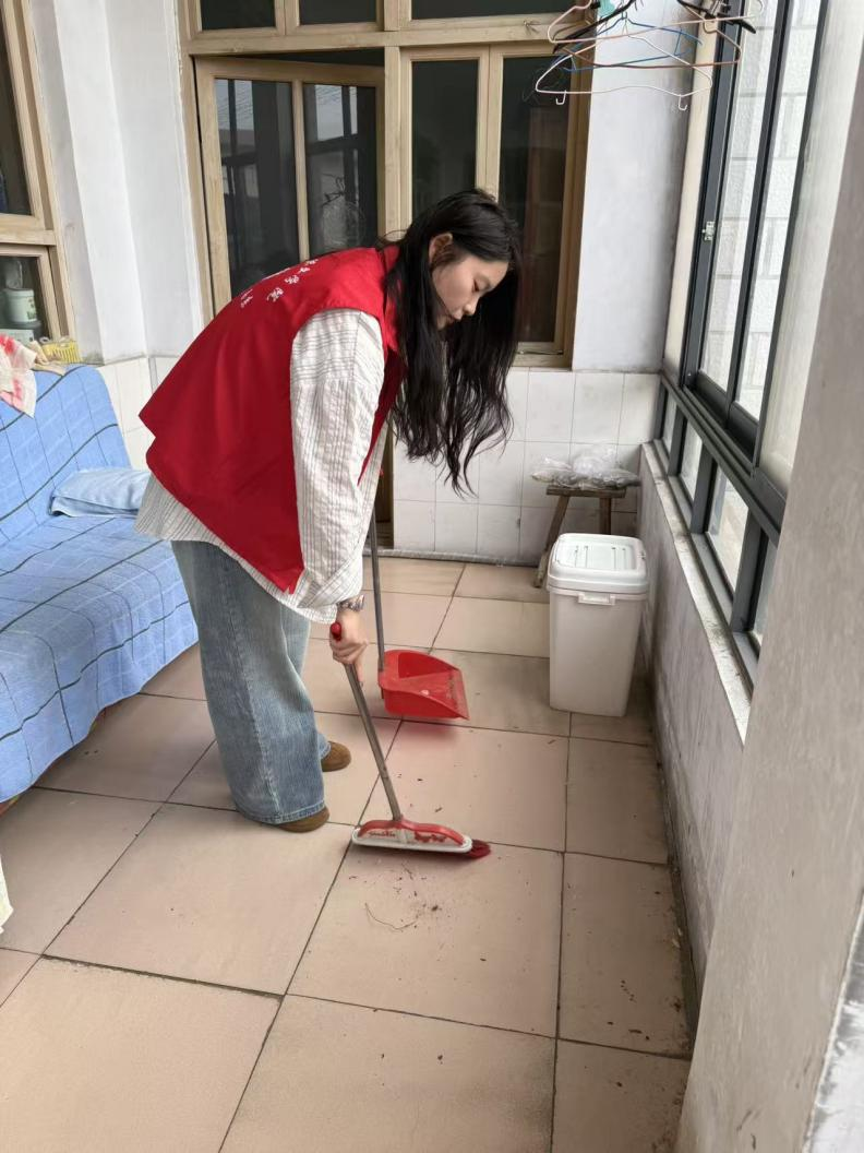 4月3日,到达烈士遗属韩俊英家中,同学们主动拿起扫帚、抹布,帮忙打扫庭院、擦拭门窗、整理房间,用朴实的劳动传递对烈士家属的关心与敬意。随后,大家围坐在一起,倾听老人讲述家人在战争中英勇牺牲的感人故事。烈士为国家和人民献出宝贵生命的精神,以及烈士家属多年来坚韧自强的品格,深深打动了在场的每一位同学。大家真切体会到今天的和平与幸福来之不易,也从烈士家属身上汲取到直面困难、坚守信念的力量。