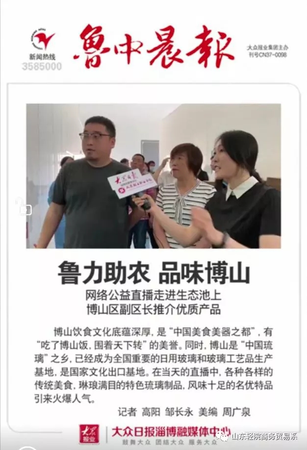 近日,淄博市委网信办策划组织“淄博在崛起|鲁力助农”系列农产品推广网络公益直播活动的第二站在博山举办,我院作为主要参与方,参加了本次活动。
