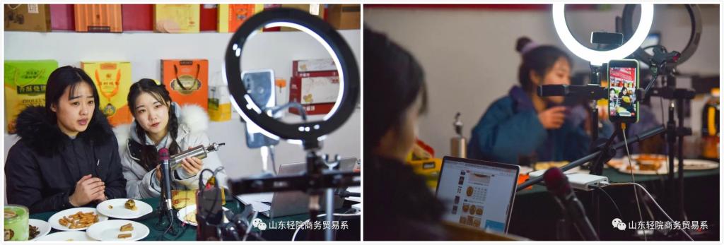 “周村烧饼,纯手工制品!酥、香、薄、脆。入口即碎,香满口腹。大家快来下单……”聚光灯下,五六部手机密密麻麻架成一排,山东轻工职业学院商务贸易系师生走进京东(中国)· 特产淄博馆的直播间轮流进行直播带货,实境实战,提升线上营销能力,助力淄博名优特产品推广销售,用当今最热门的创新营销手段,帮助中小企业拓宽渠道、走进大众视野。
