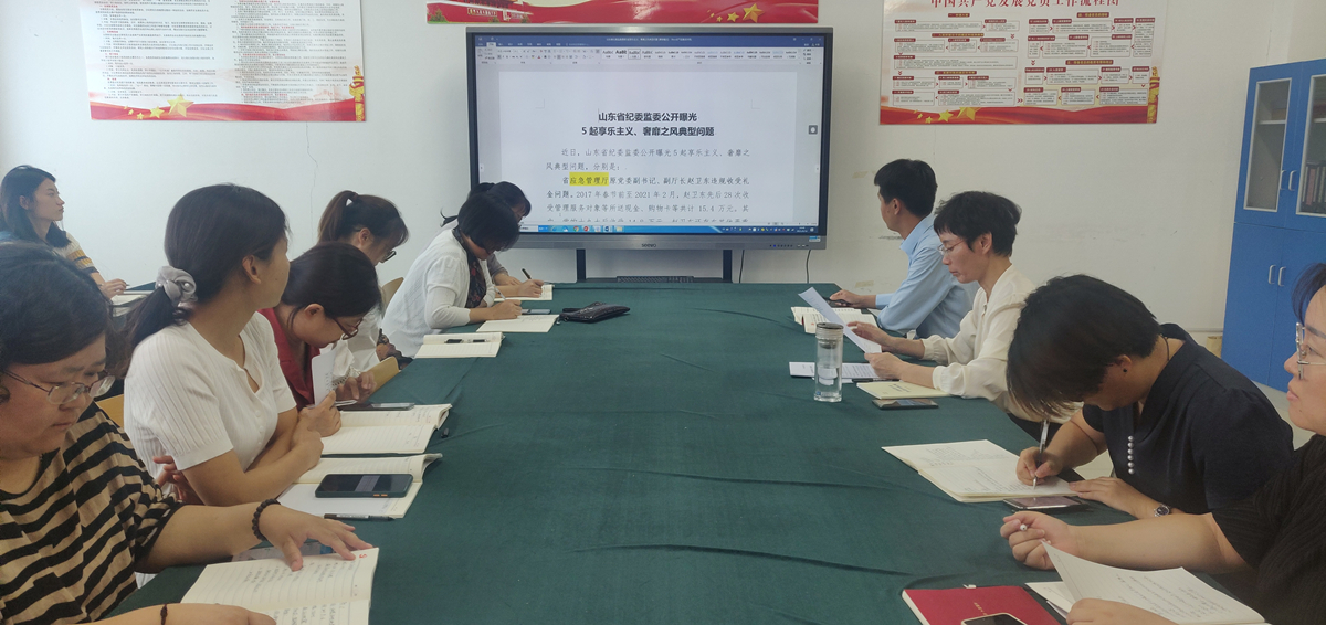 首先进行警示教育,集中学习了《山东省纪委监委公开曝光5起享乐主义、奢靡之风典型问题》和《淄博纪委监委通报5起违反中央八项规定精神典型问题》,通过典型案例分析,感受从严治党的高压态势,各级纪检监察部门对十八大以来强调、明令禁止的违纪违法行为,无论涉案金额大小一律狠抓严打,绝不姑息。