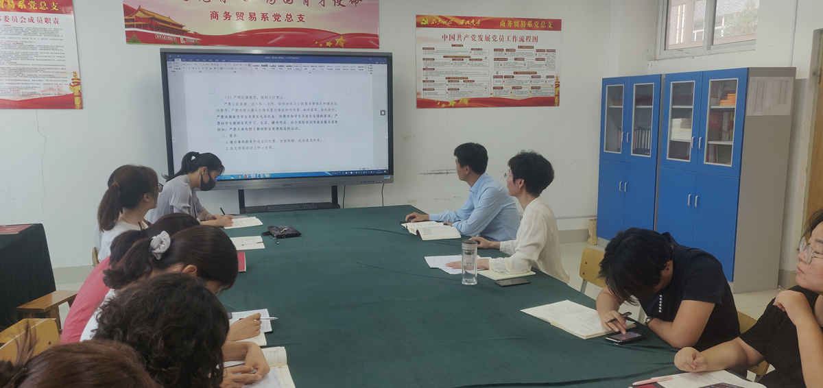 2021年9月16日下午,商务贸易系党总支全体教师在T6101开展廉洁廉政主题教育学习,党总支书记孙琳霞同志主持。