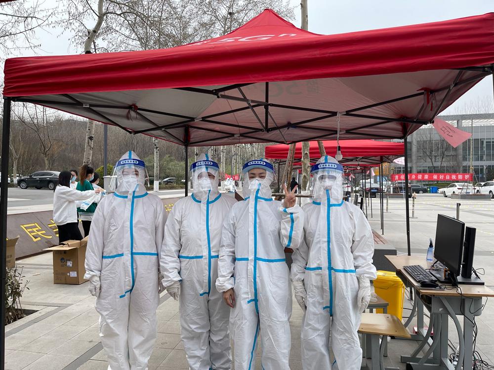 齐心协力,共赴使命。宿舍封闭,六七千名学生的吃饭是首要任务,晓晓老师每天配餐送餐,早晨六点开始,一站就是好几个小时;每天一次的全员核酸检测,也有她录入信息志愿服务的身影;作为辅导员,要关照40名学生的身心健康,开班会、谈心谈话、解决学生各种问题,让她每天充实而忙碌,过敏性结膜炎发作也挡不住前进的步伐。