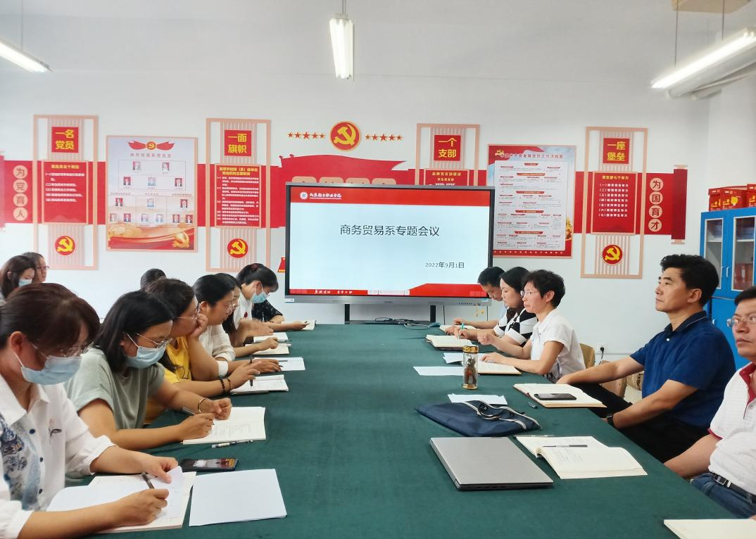 为贯彻落实省市两级教育工作领导小组会议精神,在开学之初谋划部署重点工作,2022年9月1日,商务贸易系组织召开了学期初安全稳定专题会议,山东轻工职业学院党委委员、工会主席公昆出席并讲话,商务贸易系党总支书记孙琳霞、商务贸易系副主任巩向玮以及商务贸易系全体教师参加。