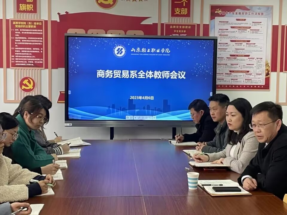 2023年4月6日下午,商务贸易系在T6101召开全体教师会议,学院党委副书记唐勋参加。