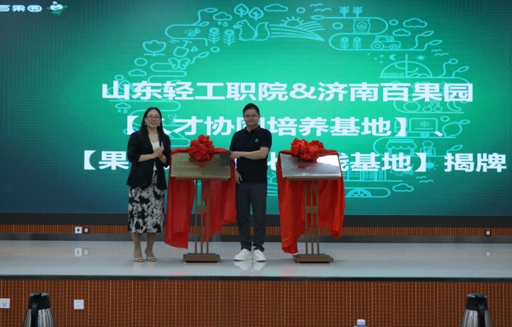 会上,校企双方共同揭牌“果创订单班”“果创订单班实践基地”,并互相聘任了产业教授和实训指导教师。