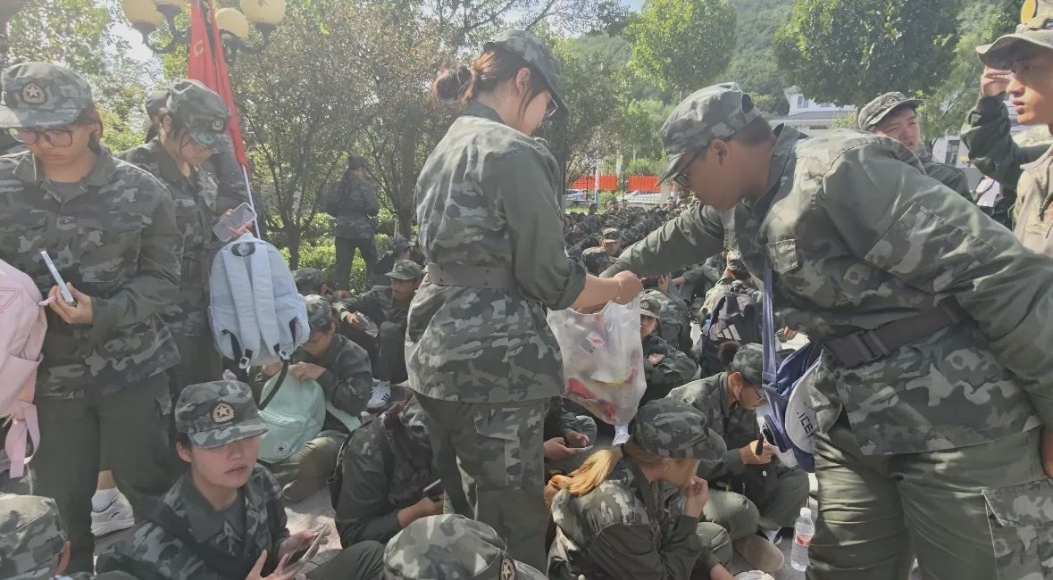 同学们也以行动传递着文明与团结。25级物流管理二班郭钰莹同学主动收集同学们补充体力后的垃圾,展示出商贸学子的文明风采,也体现出团结友爱的团队精神,于细微处彰显军训成效,为郭钰莹点赞!为商贸学子的文明点赞!