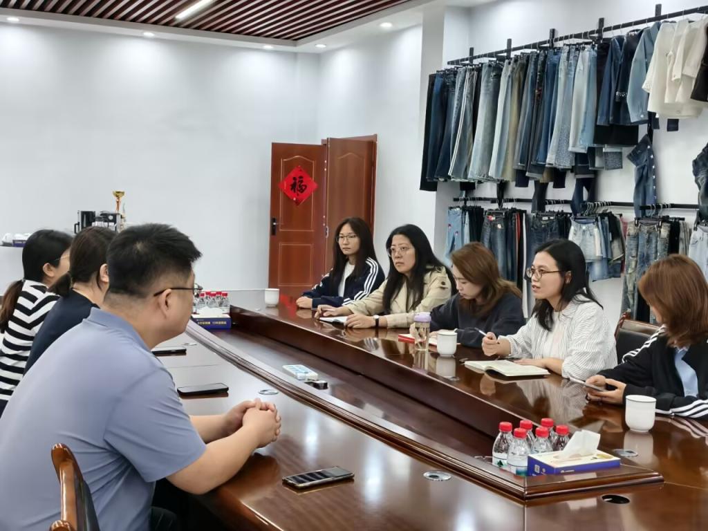 2025年9月26日,商务贸易系办公室副主任张成成带领系部教师等六人赴高青宏业集团(服装)产业园进行走访调研,双方围绕牛仔代加工产业相关业务内容现开深入洽谈。