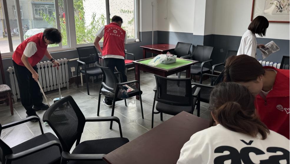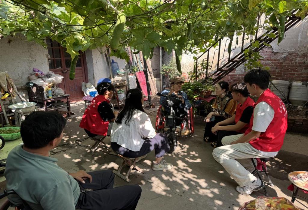在二二一社区,志愿者们投身于细致的环境清洁与温馨的助老服务之中。大家认真清扫老干部活动中心,擦拭设施、整理角落,营造出整洁舒适的活动空间;随后主动走进社区,搀扶行动缓慢的老前辈散步交谈,倾听他们讲述青春岁月的奋斗故事,以温暖的陪伴传递真挚关怀与节日问候。在淄博市新阳光残疾人互助家园,同学们为残疾人朋友送去亲切慰问,协助残疾人朋友打扫整理生活空间,营造洁净舒适的家园,并围绕“拓宽创业帮扶路径”等共同关心的话题进行了座谈。
