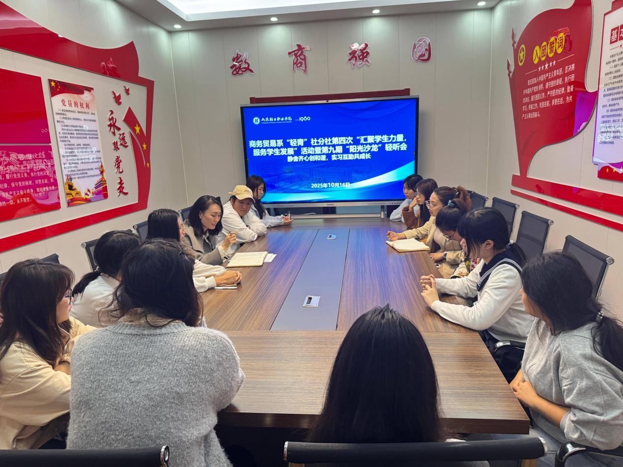 为倾听学生心声,解决学习生活及实习实训中的实际问题,营造文明宿舍环境,2025年10月16日,商务贸易系依托“轻青”社分社在“一站式”学生社区开展第九期“阳光沙龙”轻听会,辅导员、专业教师与舍长围绕“静舍齐心创和谐,实习互助共成长”主题展开深入交流。