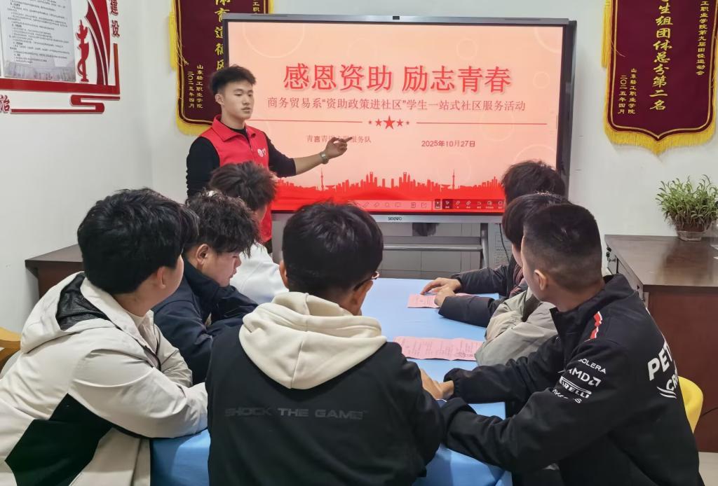 为帮助学生全面了解资助政策,2025年10月27日,商务贸易系“青言青语”志愿服务队在“数商咖苑”一站式学生社区开展了“资助政策进社区”宣传活动。以“感恩资助 励志青春”为主题,通过朋辈宣讲、发放传单等形式,将资助政策送进学生社区,切实为有需要的同学提供帮助。