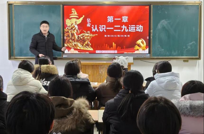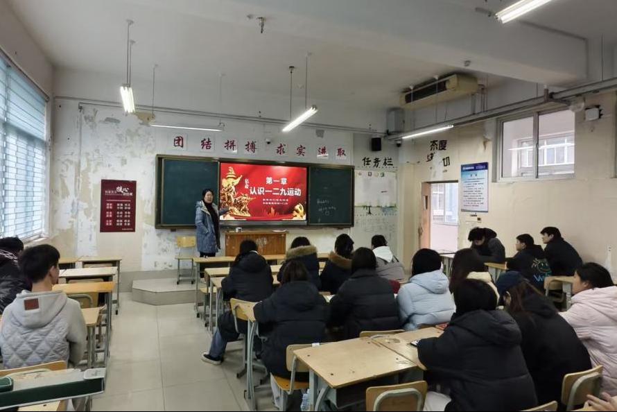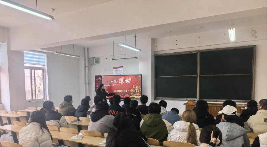 主题团课,通过“团建指导员+团支书”的讲解模式,借助PPT展示、历史影像展播、互动讨论等形式,从“一二・九”学生爱国运动的背景、经过、意义及精神等多个维度展开讲述;团建指导员讲述“一二・九”爱国运动的时代意义,增进学生们对运动的理解,将历史背景与当代价值有机串联,有效促进了红色精神的认知内化与代际传递,为青年学子筑牢了信仰之基,补足了精神之钙。