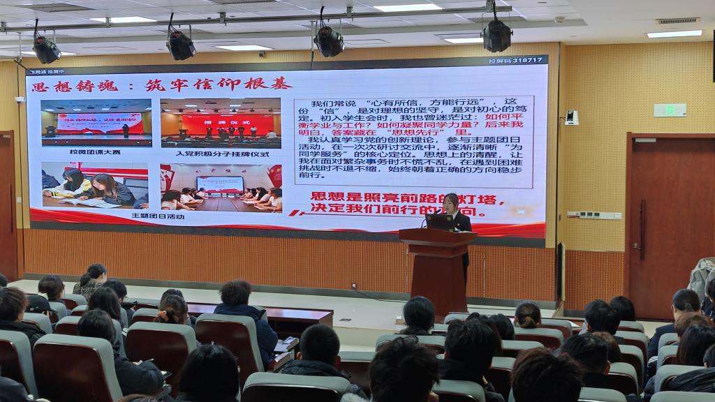 此次分享会以“榜样引领 青春接力”为主题,陶玉景老师主持,首先向大家介绍活动的目的和意义。接着,三位国家励志奖学金获得者依次进行分享,分别讲述了自己在学习、比赛、活动、社团等方面的成长经历,分享了取得成绩的经验和体会,展现出目标明确、勤奋刻苦、坚韧不拔的优秀品质。最后,蔡嘉慧老师总结,强调每一位同学都应该以他们为榜样,树立远大理想,脚踏实地,努力在学业和综合素质上取得全面提升。同时,鼓励大家在面对困难和挑战时,要保持坚韧不拔的精神。