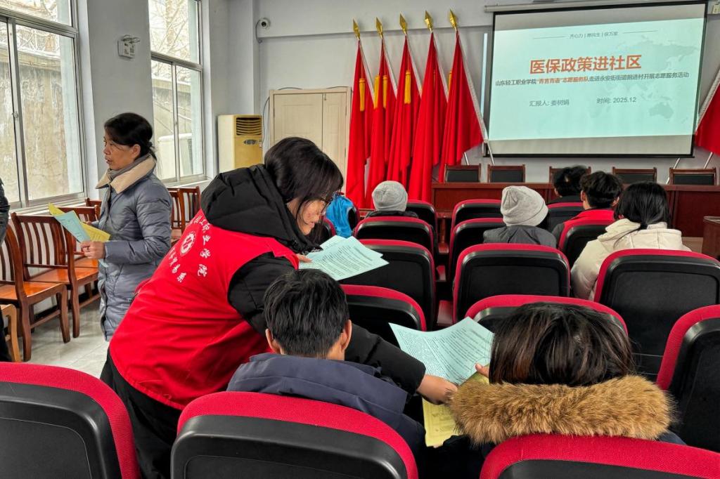 为深入贯彻落实医保惠民政策,进一步拓宽政策宣传覆盖面,12月13日,商务贸易系“青言青语”志愿服务队持续推进“百万大学生进社区”志愿服务,走进周村区永安街街道前进村,开展“医保政策进社区”主题宣讲活动。志愿者们带着精心准备的宣讲资料,以通俗易懂的方式为村民解读医保相关政策,助力村民明晰权益、便捷参保。