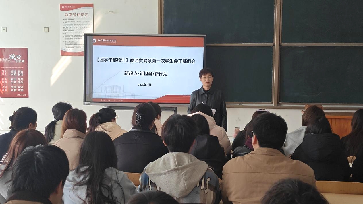 从“新起点”出发,怀“新担当”使命。本次团学干部培训会不仅是一次工作部署会,更是一次文化浸润的思想洗礼和凝心聚力的“动员令”。未来,商务贸易系团总支将持续深化“四立四有”内涵建设,引领青年学子在数商报国的征途中不断交出精彩答卷。(撰稿:娄树娟 审核:张潇靓 终审:孙琳霞)
