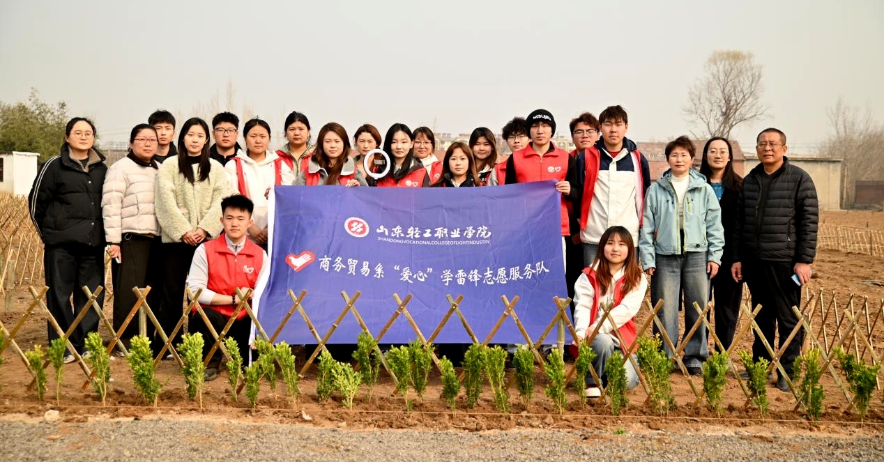 在第46个植树节来临之际,为深入弘扬雷锋精神,推动“实践育人+乡村振兴”深度融合,商务贸易系志愿服务队联合马克思主义理论研究社,于3月11日走进淄博市周村区东陈村“共享农场”,开展植树节志愿服务活动。师生们躬身力行、知行合一,将理论学习与社会实践紧密结合,在乡村振兴一线拓展“第二课堂”的实践场域。本次活动由5名轻锋社青年教师和16名学生志愿者共同参与。