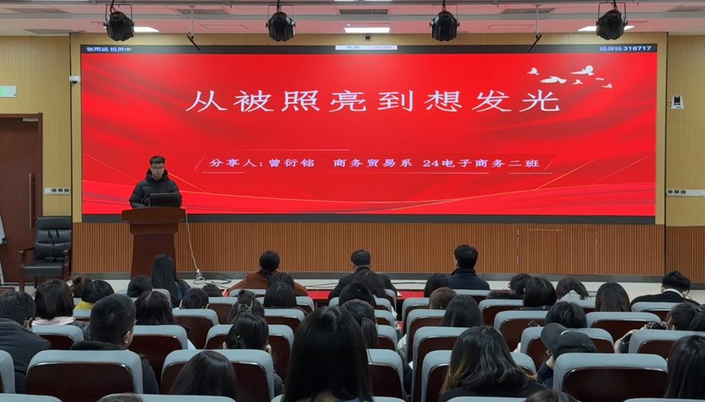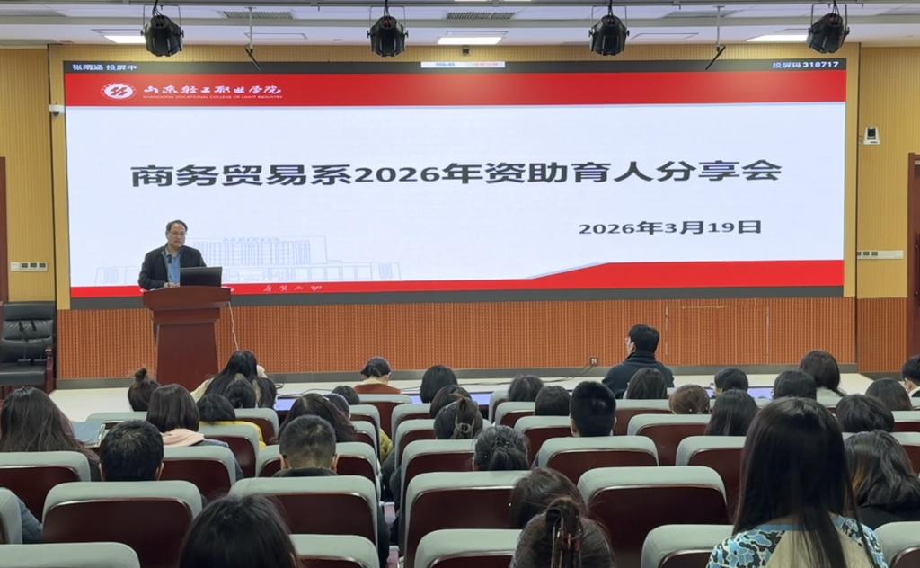 为进一步深化资助育人工作,加强家校协同育人,3月19日下午,商务贸易系在图文信息楼K101组织召开2026年资助育人分享会。商务贸易系党总支书记叶彬、校党委学生工作部副部长邱明鑫、系全体教师、学生代表及优秀毕业生代表参加会议。