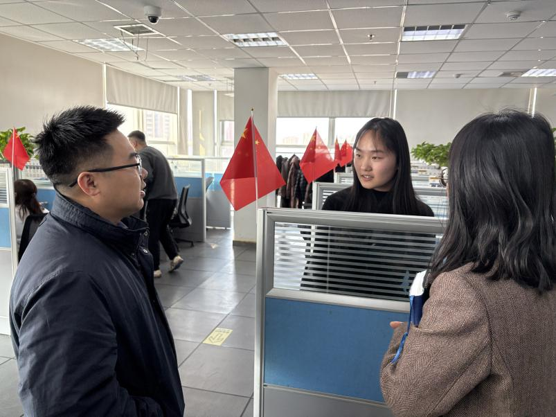 财经教研室主任王守振一行赴太平洋保险在线服务科技有限公司山东分公司调研。校企双方围绕校园双选会、招聘计划、岗位设置及学生素质要求等进行交流,并就财会业务、财务内控、数字化财务转型及人才适配需求展开探讨。在走访实习学生环节,老师们与实习生亲切座谈,详细了解岗位内容、工作适应情况及生活需求,鼓励学生将课堂知识与岗位实践深度融合。