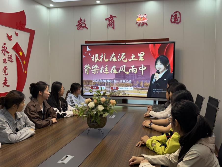 4月21日,商务贸易系在五号公寓“一站式”学生社区商睿园开展“轻院之星——自强之星”分享会。活动旨在发挥优秀学生榜样引领作用,落实“大带小”“长带新” 育人理念,帮助学生夯实学业基础、提升综合素养、坚定成长信念,由轻院自强之星娄树娟同学主讲,部分学生代笔参加活动。